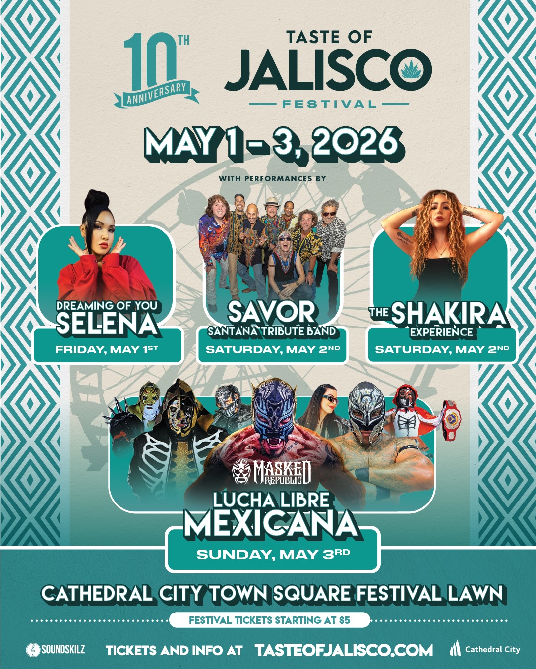 The 10th Anniversary Taste of Jalisco Festival brings three days of live music and high-energy entertainment to Cathedral City Town Square Festival Lawn.
